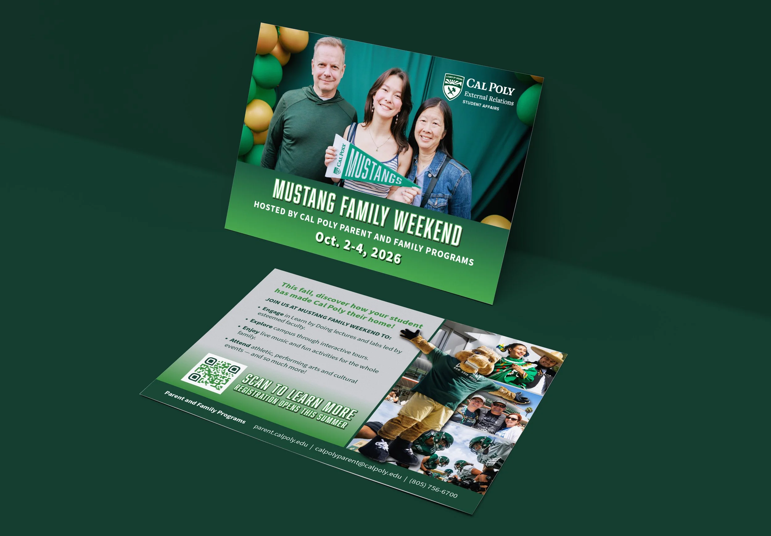 A comprehensive brand and communications refresh was developed for Parent and Family Programs and Commencement. The goal was to align these programs more closely with Cal Poly’s established brand while creating a distinct, cohesive identity that resonated with diverse audiences, primarily Gen X and Baby Boomer parents, as well as Gen Z students.